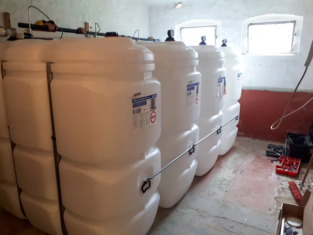 4 x 2000 Liter Kunststofftanks ersetzt durch 4 x 1500 Liter Sicherheitstanks inkl. Mauerabbruch und Entsorgung.