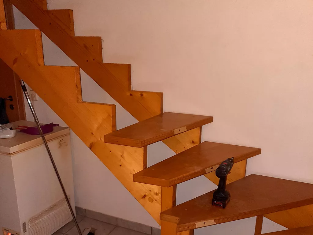 Wir installierten eine neue Tankanlage. Um die neuen Tanks in den Keller zu bekommen, bauten wir kurzer Hand die Kellertreppe aus und hinterher wieder ein.