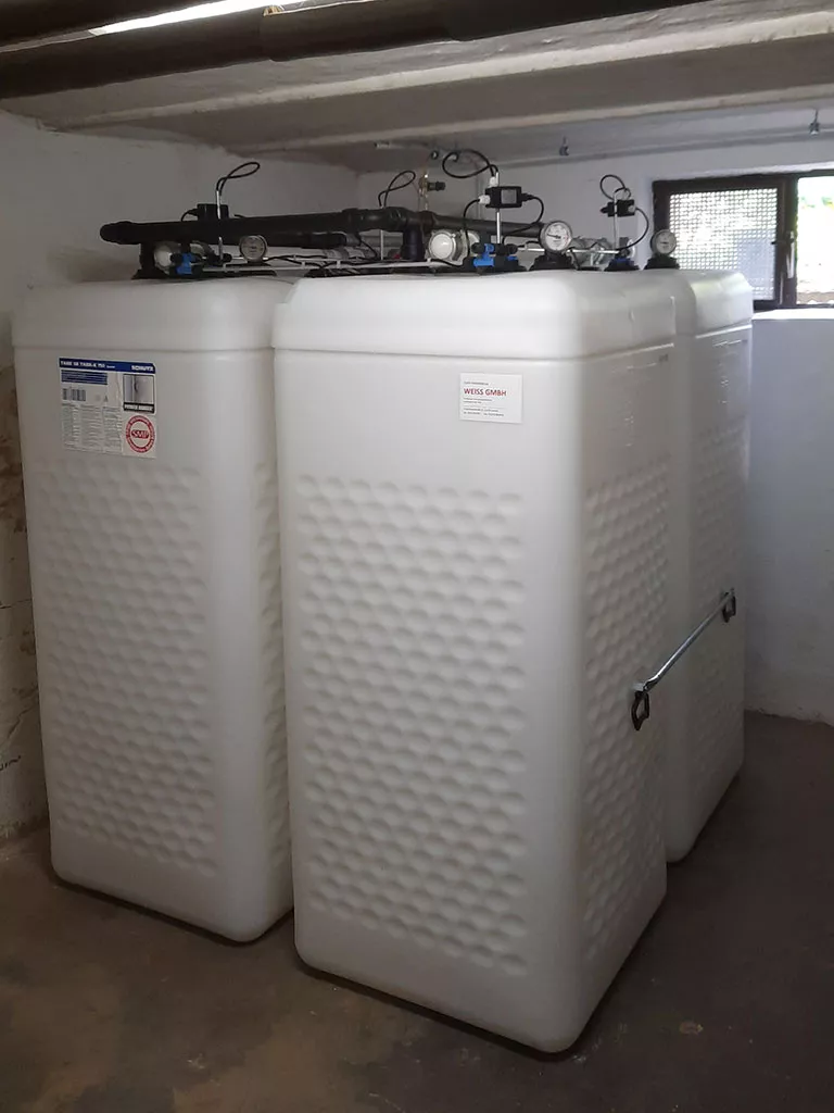 Wir haben die alten GFK-Tanks durch 4 x 750 Liter Tank in Tank Sicherheitstanks ersetzt.