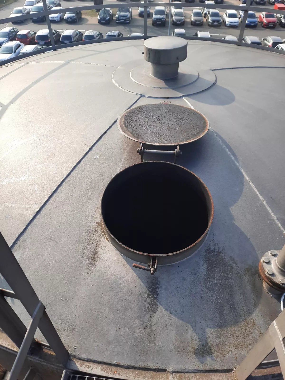 Im Rahmen einer routinemäßigen Wartung wurden wir beauftragt einen Tank mit einem Fassungsvermögen von ca. 200.000 Litern zu reinigen und zu warten.